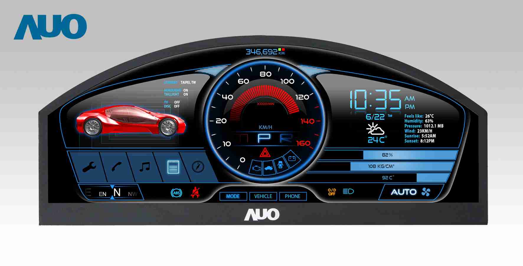 尊龙集团 12.3吋超高解析异型切割车用面板,,拥有流线外观及精细画质