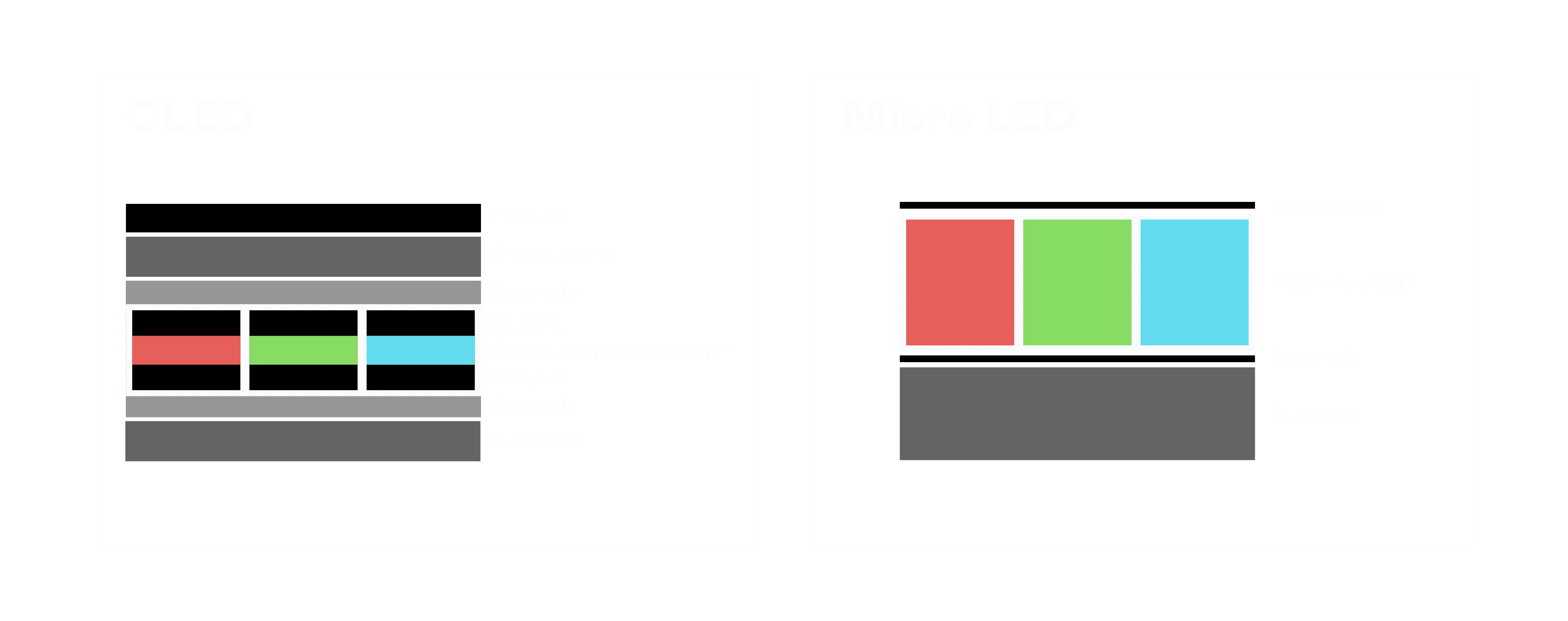 以 LED 做为显示画素,,,,可让 LED 的发光效率发挥到极致,,,从而让显示器具备优异的亮度表现,,,不论是在户外或室内,,均具备出众的显示效果。。。同时,,与使用有机材料的 OLED 相比,,LED 具备更稳定、、、、寿命更长的特性,,,不仅不会有画面烙印问题,,,,而且更不容易出现故障、、坏点。。。